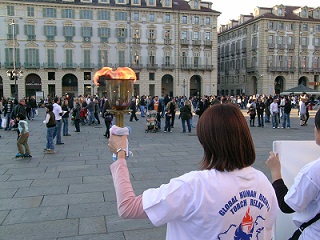 On October 25th and 27th 2007, the Coalition to Investigate Persecution of Falun Gong (CIPFG) held two rallies in Rome and Turin to support the Human Rights Torch Relay.