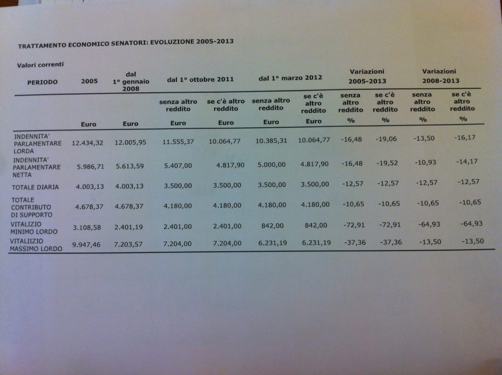 Il trattamento economico dei senatori: evoluzione 2005-2013 Trattamento economico senatori 2005_2013 PrecedentePrecedenteDECRETO SANITÀ. MALAN (PdL): GOVERNO SA CHE CI SONO ANCHE DDL? SuccessivoEUROPA. MALAN (PdL): SÌ A STATI UNITI D’EUROPA, MA POPOLO NE ELEGGA IL PRESIDENTESuccessivo