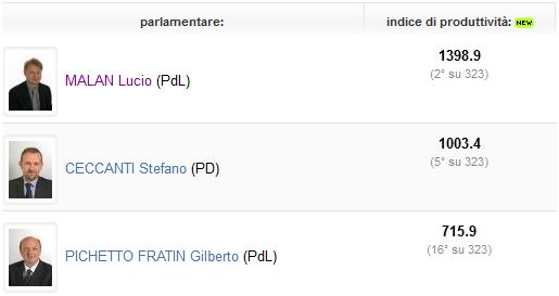 «È difficile che la serietà di un politico faccia notizia» dichiarava a evangelici.net il senatore Lucio Malan, evangelico, in una intervista esclusiva concessa nel 2008. È difficile, ma può accadere: lo conferma Openpolis, la piattaforma web che riporta e aggiorna l’Indice di produttività parlamentare, vale a dire la quantità e l’efficacia dell’attività realizzata da ogni deputato e senatore dall’inizio della legislatura (aprile 2008). Secondo i suoi dati, il parlamentare evangelico risulta essere per presenze il primo parlamentare PdL su 337, il primo in Piemonte su 62, il secondo senatore più produttivo su 332, il terzo parlamentare più produttivo su 995.