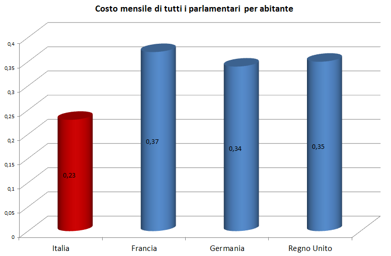 Ma qualcuno osserverà che, a causa del gran numero dei parlamentari italiani, il costo totale sarà superiore nel nostro Paese.