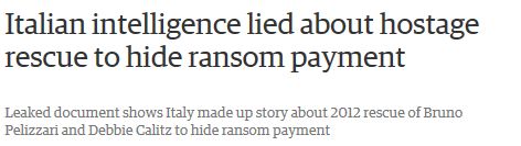 “Sono innumerevoli lati oscuri che caratterizzano alcune operazioni della nostra Intelligence in riferimento alle operazioni all’estero per il rilascio di nostri connazionali sequestrati. Preoccupa e non poco la ricostruzione che il ‘Guardian’ ha fatto del rilascio di Bruno Pellizzari e della moglie Debora Calitz: un documento riservato dell’AISE parla del pagamento di un riscatto da parte delle autorità italiane ma, fino ad oggi, a casa nostra ci avevano raccontato che era stato tutto merito di un blitz delle forze somale e che non c’era stato bisogno di pagare. Ora, è evidente che non possiamo diventare un Giano bifronte: o il giornale britannico ha montato tutto ad arte, ma il documento dell’AISE parla chiaro, oppure chi ha la responsabilità della nostra Intelligence ha mentito.