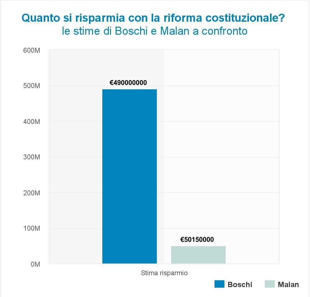 Lucio Malan, senatore di Forza Italia, ha pubblicato un documento di sei pagine dal titolo “Le cifre vere e quelle false di Maria Elena Boschi”. Con il documento, Lucio Malan intende dimostrare con i numeri che, con la riforma, si risparmierebbe intorno ai 50 milioni di euro all’anno, di cui circa 42 provenienti dalle indennità e dai rimborsi dei senatori e appena 5,5 dai costi per i gruppi parlamentari e le commissioni.