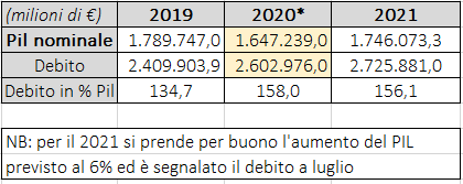 primi sette. Nel periodo gennaio-luglio 2020, il debito aumento “solo” di 151 miliardi, meno di quest’anno. Eppure c’è il “debito pubblico in calo nel 2021”, proclamano tiggì e giornaloni.